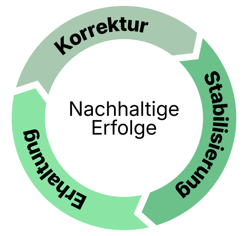 Damit sich Verbesserungen nicht nur kurzfristig zeigen, sondern dauerhaft stabilisieren, erfolgt die Behandlung in aufeinander aufbauenden Phasen.